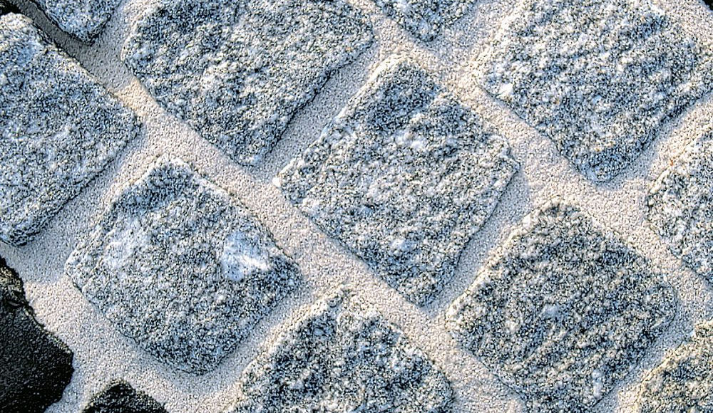 Poista ylimääräinen laasti välittömästi vesisuihkeella varoen pesemästä saumoja pois. Varmista, että puhdistus suoritetaan saumattomien alueiden suuntaan ja että myös kivipinta puhdistuu. Anna pinnan kuivahtaa 10-20 min, jonka jälkeen lakaise jäljelle jäänyt laasti pois kostealla kookosharjalla.